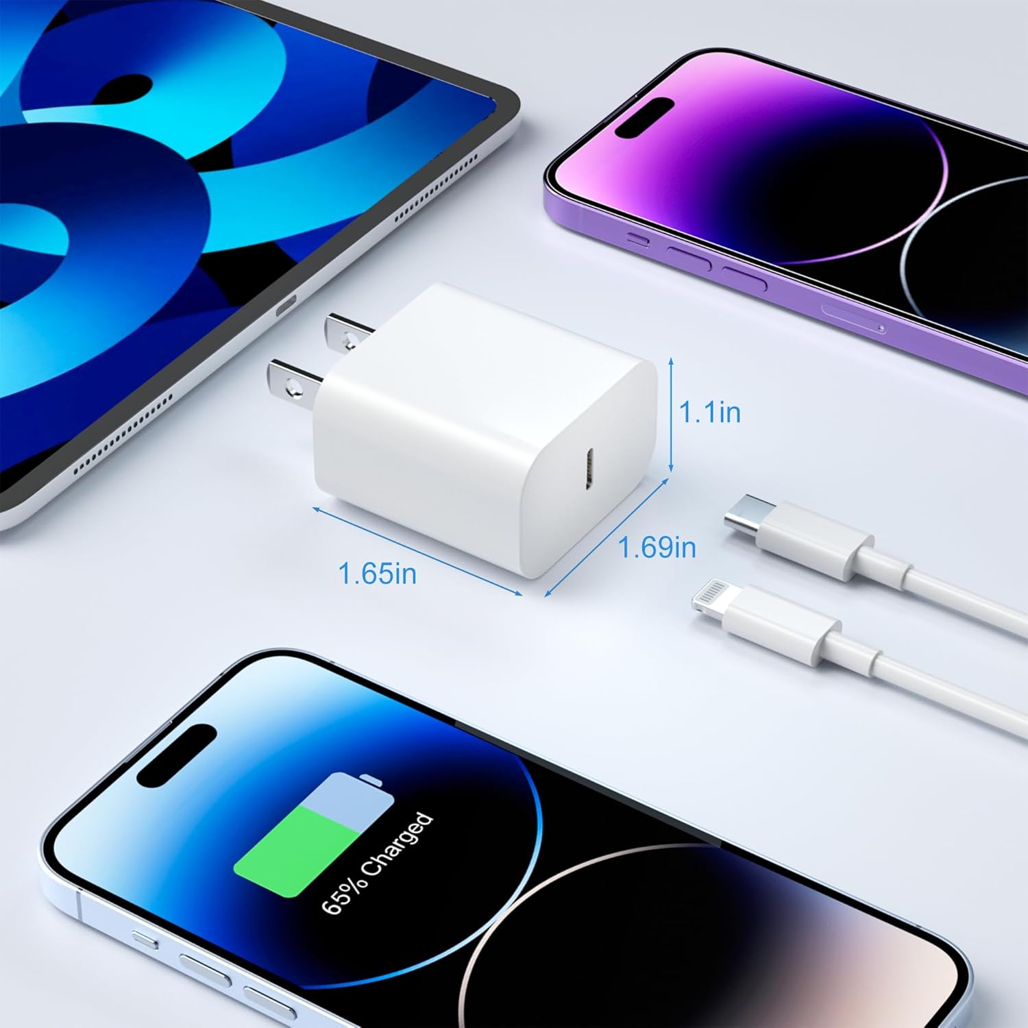 • 20W USB-C Wall Adapter + Lightning Cable