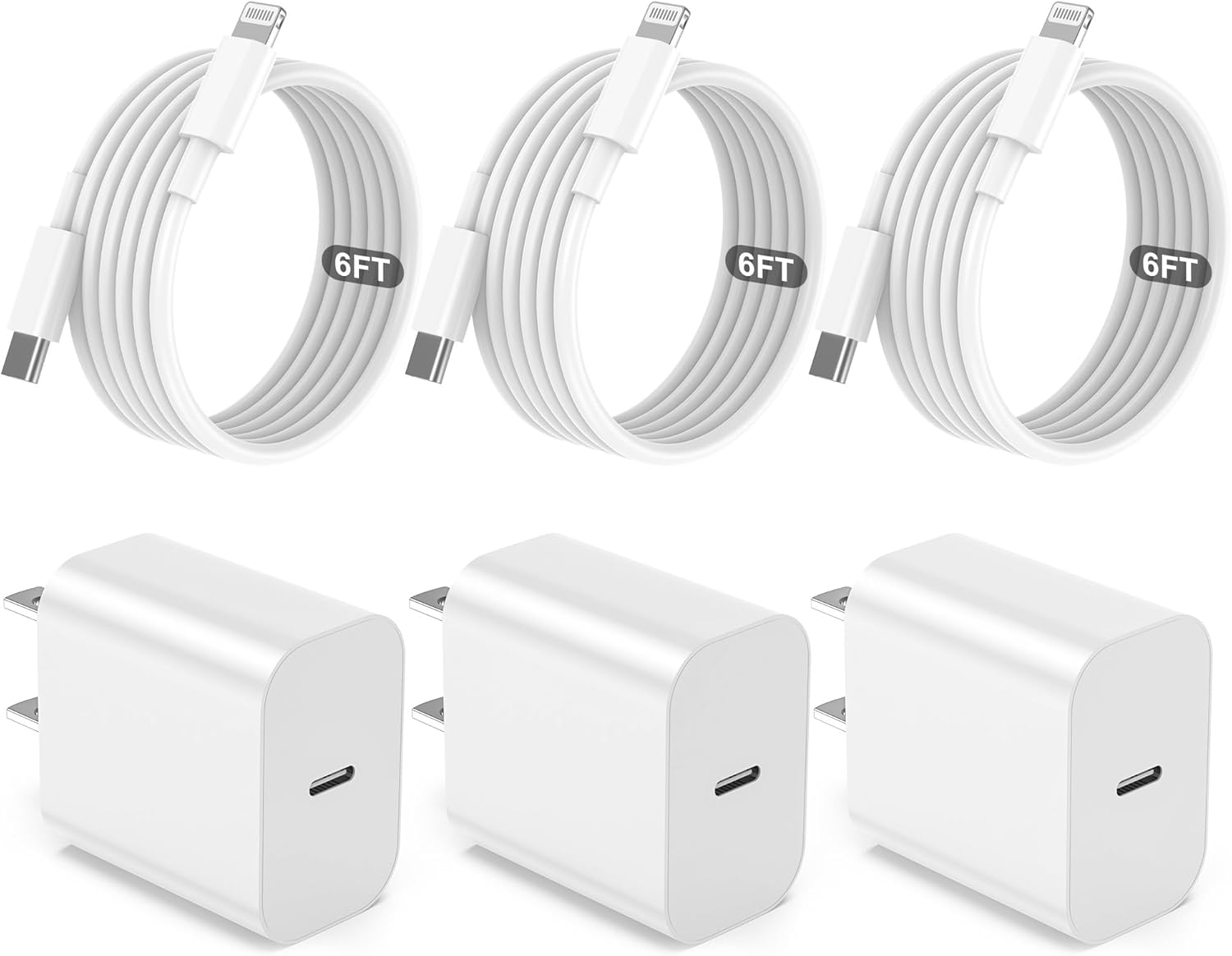 Complete charging bundle with 3 Apple-compatible adapters + cables in one box. Works with iPhone 5 through 14 Pro Max. Includes Lightning cables and wall chargers for all your charging needs. Perfect value pack!