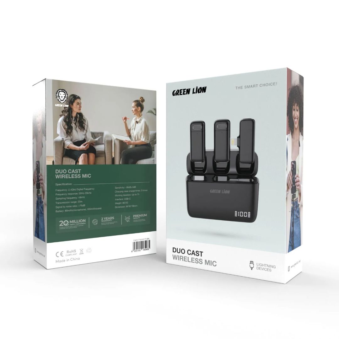 Earphones & Headphones, iPhone, Mobile Accessories, Smart Phone Accessories, speakersGreen Lion Duo Cast Wireless Mic – Premium Lightning & Type-C