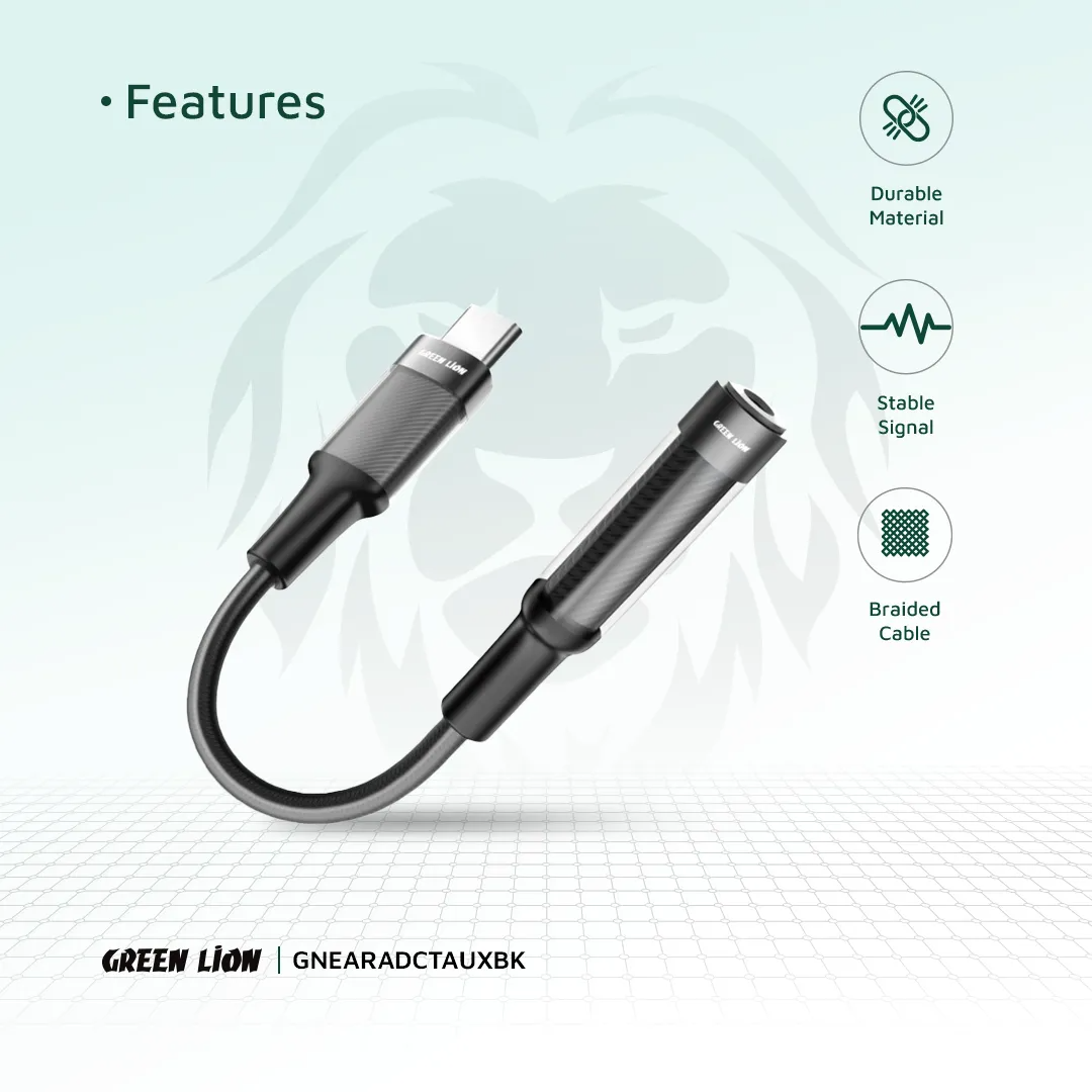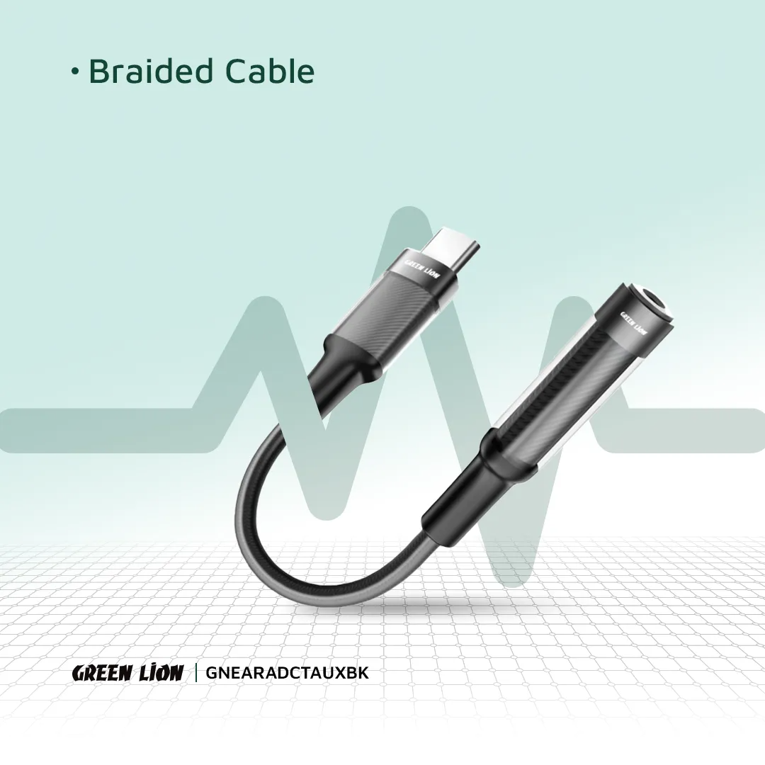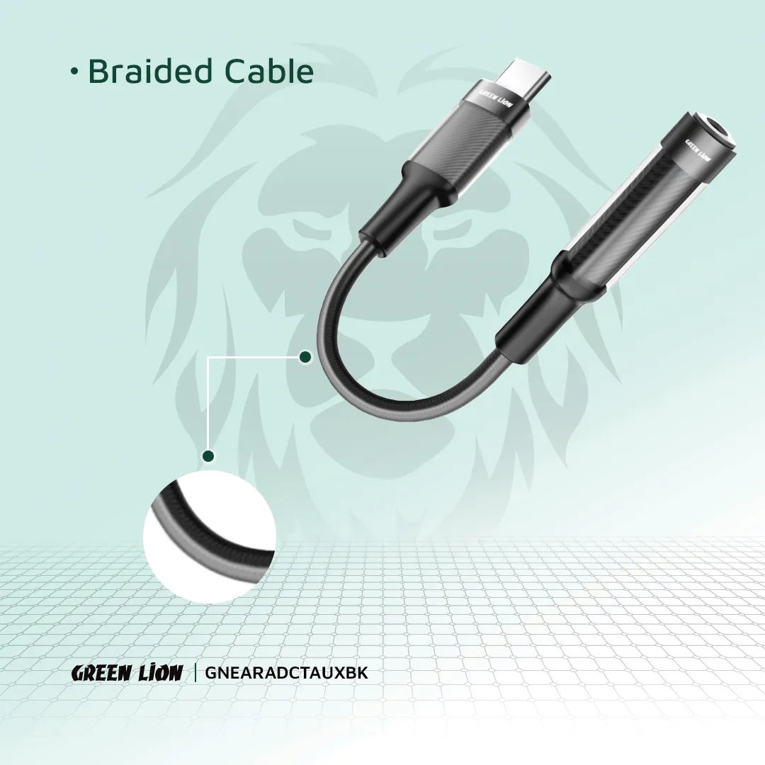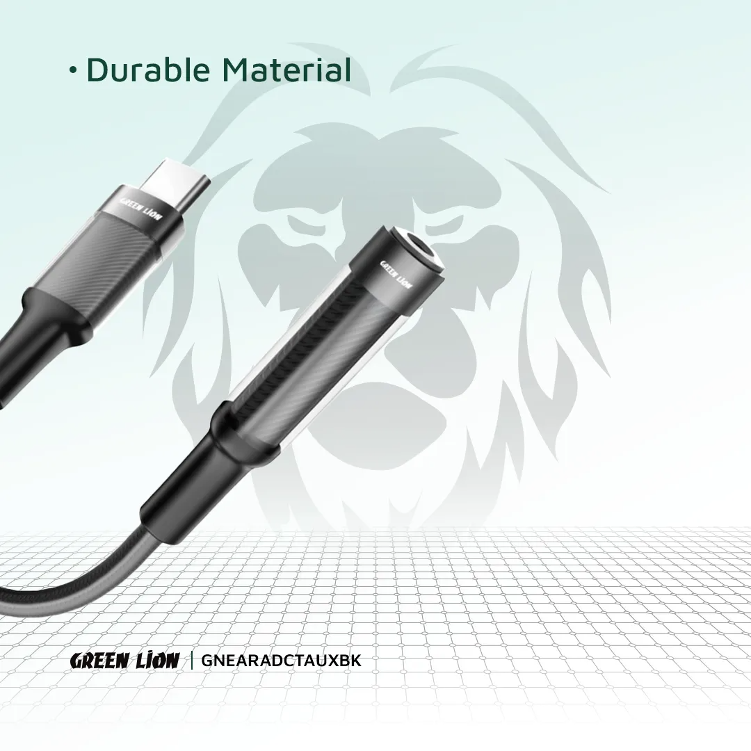 The Green Lion Earphone Adapter USB-C to 3.5mm Audio Jack is a strong and reliable solution for connecting your headphones to USB-C devices.[3][8] Made from TPE + aluminum alloy and equipped with a braided cable, this compact 12cm adapter is built to last and withstand daily use while providing a stable signal for smooth audio playback.[3][8]