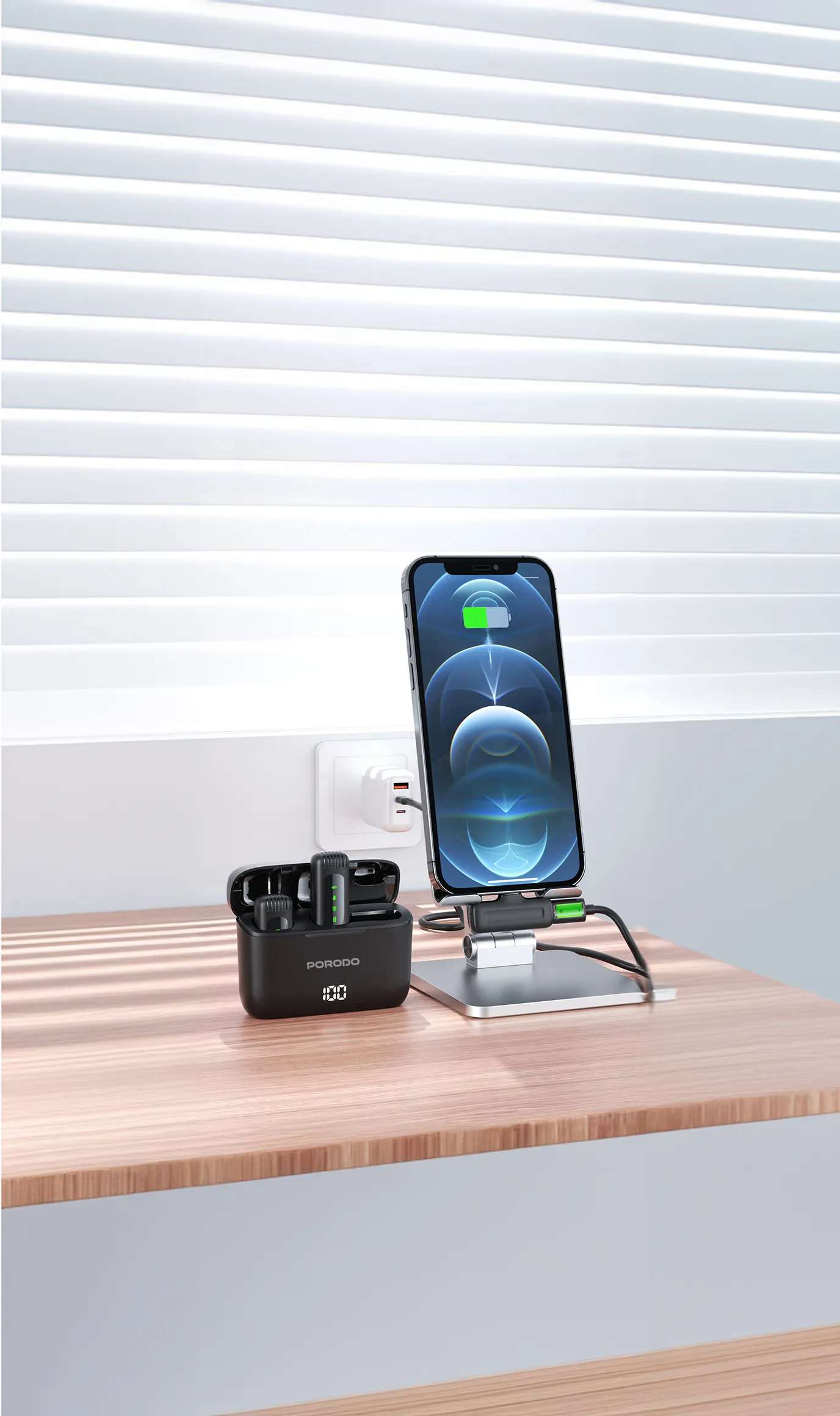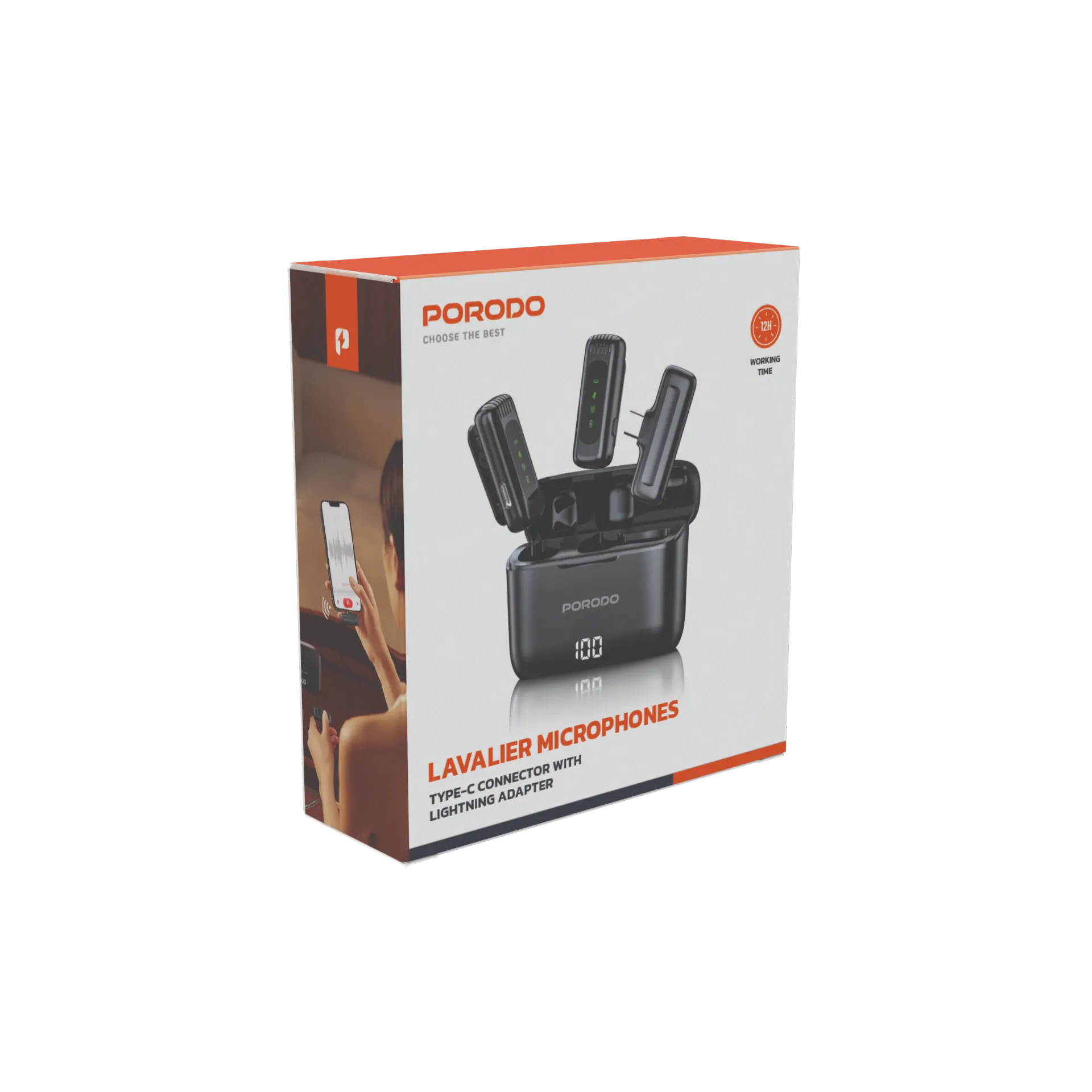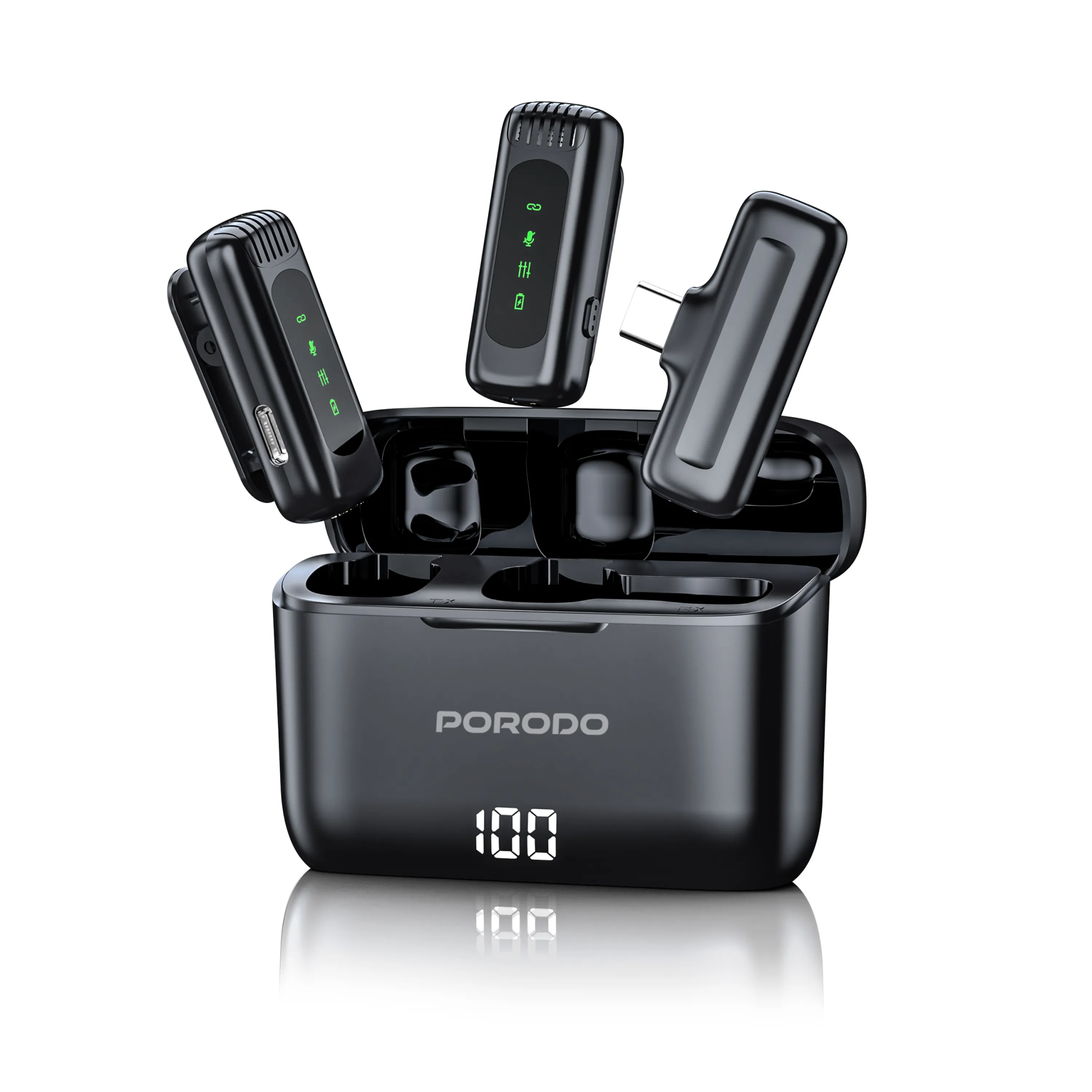 Porodo Lavalier Double Microphone with Charging Case — Dual Wireless Mics