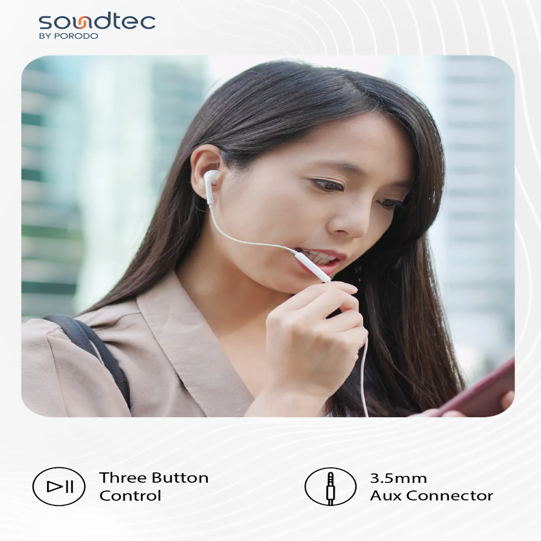 The Porodo Mono Earphone 3.5mm AUX Connector is a simple, reliable, and comfortable wired earphone designed for everyday calls and music. It connects easily to a wide range of devices using the standard 3.5mm AUX port, making it a great choice for smartphones, tablets, laptops, and audio players that support a headphone jack. The mono design is ideal for users who want to keep one ear open while working, commuting, or handling customer calls.