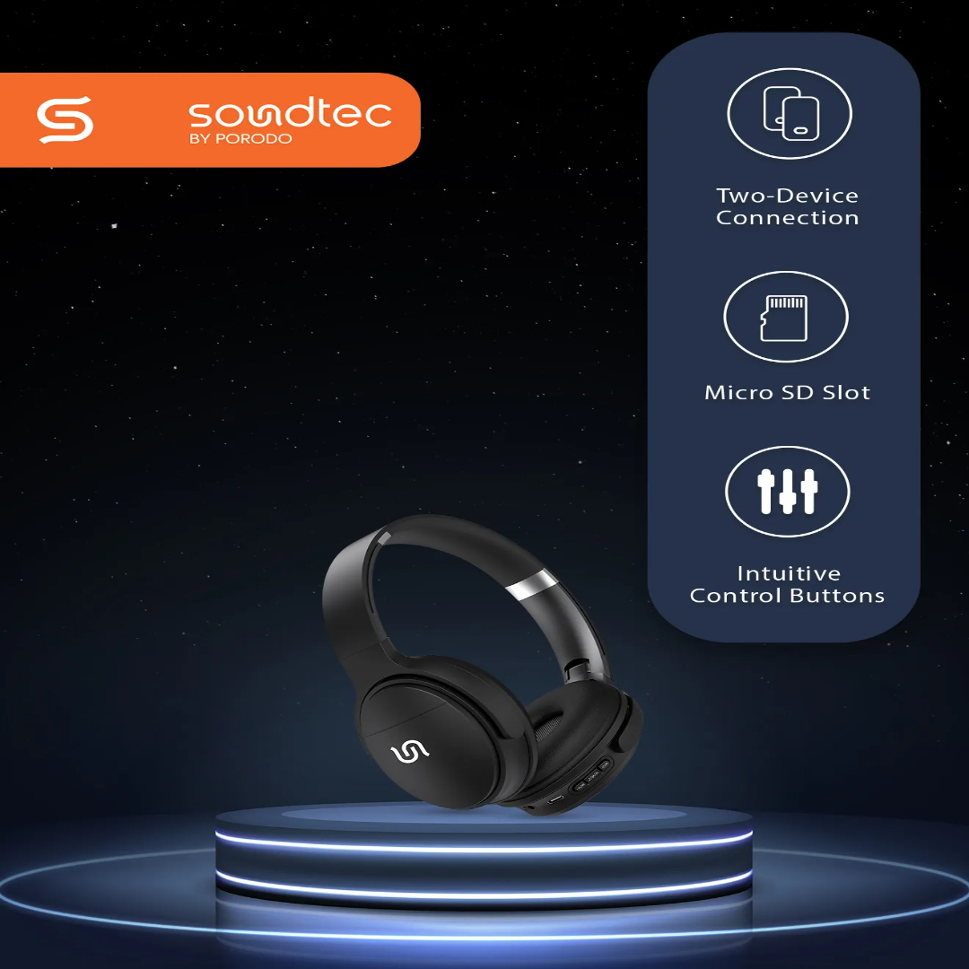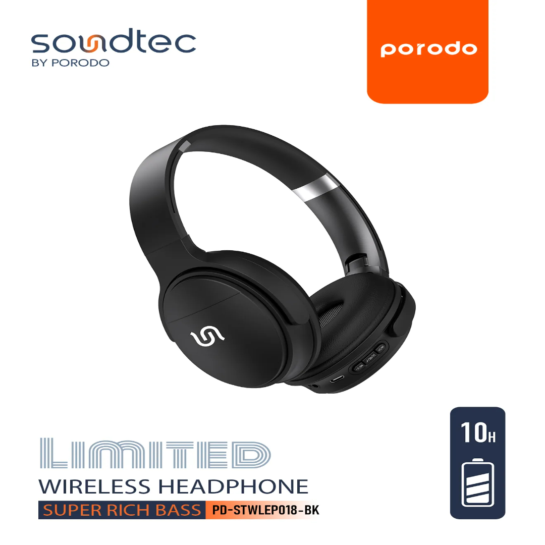 Soundtec Limited Wireless Headphone is built for bass lovers who want flexible listening options in one headset. Enjoy deep, punchy sound for music, videos, and casual gaming, with simple controls that keep everyday use easy.